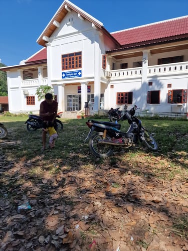 Die ersten Einheimischen, die am Unfallort vorbeikamen, hielten direkt an und versuchten mir den Weg zum Krankenhaus zu zeigen. Dass an selbständiges Weiterfahren in meinem Zustand und mit diesem Roller nicht zu denken war, schien die Locals dabei aber wenig zu interessieren. Während ich noch versuchte, diesen Umstand irgendwie klarzumachen, kam glücklicherweise ein Pick-Up angefahren, den die Locals direkt anhielten und über meinen Unfall informierten. Ohne zu zögern, durfte ich einsteigen und wurde im Eiltempo in das „Community Hospital“ nach „Pak Xeng“ zurückgebracht.