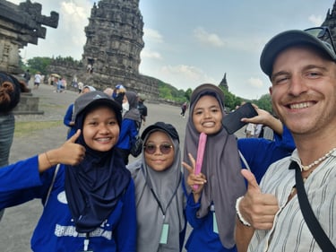 Naja halb so wild. Gekommen war ich schließlich gerade wegen dieses authentischen Indonesiens. Yogja hatte vielleicht keinen Strand, aber dafür einige der schönsten Tempelanlagen Javas. Und natürlich jede Menge Locals – Ich war ja wieder zurück in Südostasien. Direkt beim ersten Spaziergang durch die Fußgängerzone der Stadt wurde ich nahezu minütlich von Einheimischen angehalten, um Selfies zu machen. In der Bäckerei gab’s direkt eine Führung durch sämtliche Räume sowie den Kaffee aufs Haus und bei den verschiedenen Tempelanlagen wurde man von unzähligen Schülern und Schülerinnen fast schon belagert und mit Interviewanfragen überhäuft. Die Idee der Schulen, so die English-Skills ihrer Schüler zu verbessern, fand ich natürlich ganz sweet. Nach dem gefühlt zwanzigsten Gespräch ging mir dann aber auch irgendwann die Motivation aus. Um dem plötzlichen VIP-Status in der asiatischen Großstadt also doch erstmal wieder zu entfliehen, wurden die folgenden Tage vor allem im Hostel verbracht.