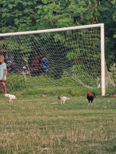 Was für einen absoluten Film von Fußballspiel wir dann aber die kommenden 90 Minuten sehen sollten, hätten wir unmöglich vorhersehen könne. Hühner im Sechzehner, ‘ne Kuh am Seitenrand, Roller mit ganzen Großfamilien auf dem Beifahrersitz, die während eines Einwurfs kurz mal durch den Mittelkreis düsen, und vor allem eine Art und Weise Fußball zu spielen, die so ziemlich genau das Gegenteil war, von dem was ich von deutschen Amateurfußballspielen gewohnt war. Die Indonesier spielten quasi Fußball mit Vollkontakt. Sprungkicks, hüfthohe Grätschen, stumpfes Umschubsen. Dazu alles Spieler auf den Ballführer, immer und überall. Irgendwas zwischen Chaos und Kampfsport völlig ohne Taktik. Aber auch völlig ohne Meckern. Wo in Deutschland bereits bei der ersten Berührung laut losgeschrien wird, war in Indonesien selbst nach ‘nem Tritt in den Bauch kein Mucks zu hören – Indonesische Härte eben. Wie das Spiel ausging, weiß ich nicht mehr. Dank des Drumherums aber sowieso zweitranging. Dabei sein ist alles beim Insel-Amateurfußball Indonesiens.