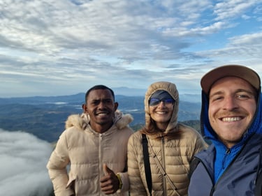 Schlussendlich am Gipfel wurden wir für diese Strapazen mit einem Meer aus dichten Wolken nicht wirklich belohnt. Die Belohnung war einfach dieses Gefühl, es gegen die Erwartungen mit drei von vier Augen geschafft zu haben. Ein letztes Mal ein wirkliches Abenteuer in Südostasien.