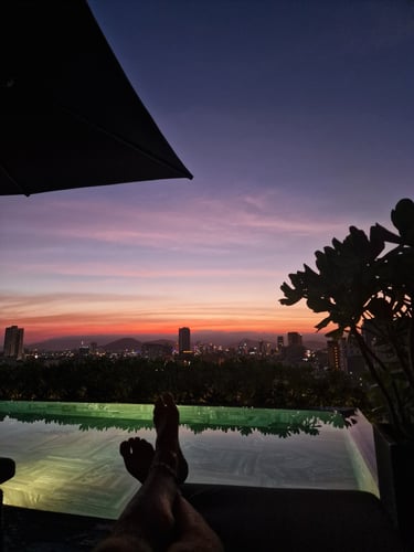 Was ich allerdings nicht hatte, war Energie für Feiern, Ausgehen und jede Menge Unternehmungen mit dem Rest. Leicht erkältet aus den Philippinen ausgereist war mein Vietnam-Tagesablauf dementsprechend: Endlich wieder gutes Essen, Premium-Hotel und Rooftop-Pool! Ziemlich Backpacking untypisch, gerade nach einem Monat Philippinen, wo günstige Premium-Qualität eine absolute Rarität war, aber auch ziemlich geil. Dass Da Nang als Magnet für russische und chinesische Pauschaltouristen ansonsten eigentlich einen ziemlich komischen Vibe hatte, konnte ich insofern ausnahmsweise getrost ignorieren. Vermutlich müsste ich den Touristenmassen sogar irgendwie danken. Weil Angebot und Nachfrage schließlich den Preis ergeben, wäre unter normalen Bedingungen mein Hotelzimmer wahrscheinlich niemals für unter 100 € zu bekommen gewesen.