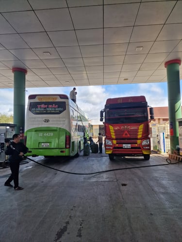 Mein eigentliches Ziel hatte ich trotz des unerwarteten Komforts aber natürlich nicht aus den Augen verloren, sodass es nach drei Tagen Vietnam finally per Bus über die Grenze nach Thakhek, Laos gehen sollte. Immer noch ziemlich im Premium-Hotel-Entspannungs-Modus, wurde ich bereits beim Anblick des „Reisebusses“ unsanft zurück in die Backpacking-Realität geholt. 16 Stunden Reisezeit, enge Sitze, überall seltsame Pappkisten und ein Fahrer, dem sein Leben offensichtlich nicht gerade wichtig war. Als ich dann noch für die Grenzkontrolle an einer völlig unscheinbaren Tankstelle kommentarlos zum Ausgang gebracht wurde, der Bus einfach weiterfuhr und die einzigen zwei anderen Touristen nur französisch sprachen, wusste ich, es geht zurück nach Laos. Wieso wollte ich das nochmal machen?!