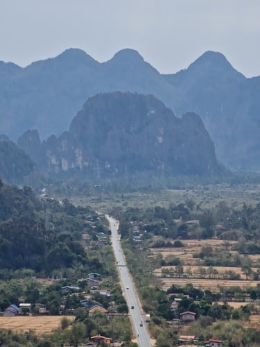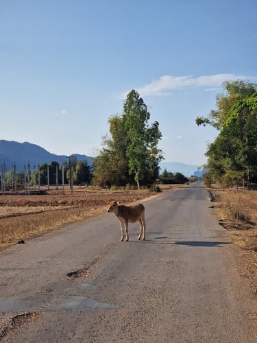 Genau das hatte ich mir schließlich für Laos vorgenommen und daher auch allen Offerten für Travelpartner auf dem Thakhek-Loop abgelehnt. Diese vier Tage sollten einfach nur ich, das Motorrad (wieder eine Honda Wave 🫡) und das Niemandsland von Laos werden. Nach Frühstück und Blogpost-Upload also mit maximaler Euphorie auf zur Etappe Nr.1 von Thakhek nach Nakai und mit maximaler Euphorie rein in die erste Polizeikontrolle…