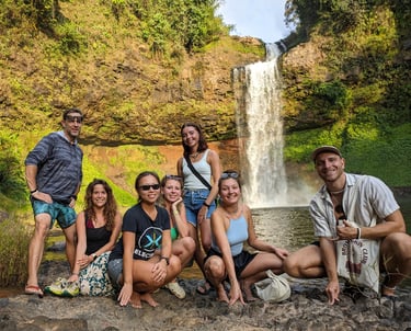 Und wieder mal eine Bestätigung, dass Laos seinen ganz eigenen Charme hat. Offiziell zwar die drittgrößte Stadt des Landes, fühlte ich mich vor Ort eher wie in einem größeren Ort. Angekommen im Hostel gab’s selbstverständlich wieder jede Menge Franzosen sowie eine Einladung, am nächsten Tag auf eine Kaffee X Waterfall-Tour mitzukommen. Nichts leichter als das! Die Social Battery war wieder voll aufgeladen, die Wasserfälle wunderschön und das gemeinsame Sunset-Watching am Mekong ein wirklich gelungener Abschluss von Laos 2.0.